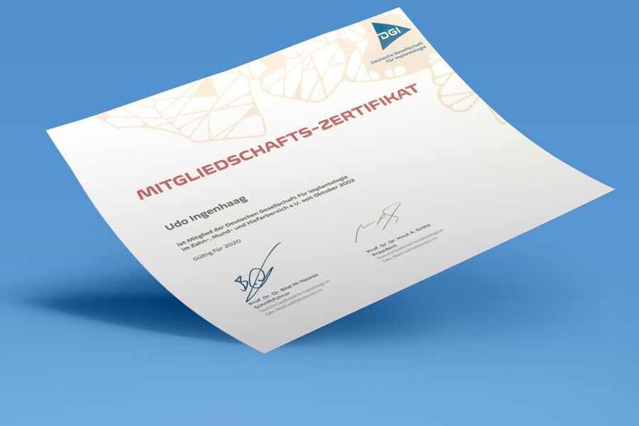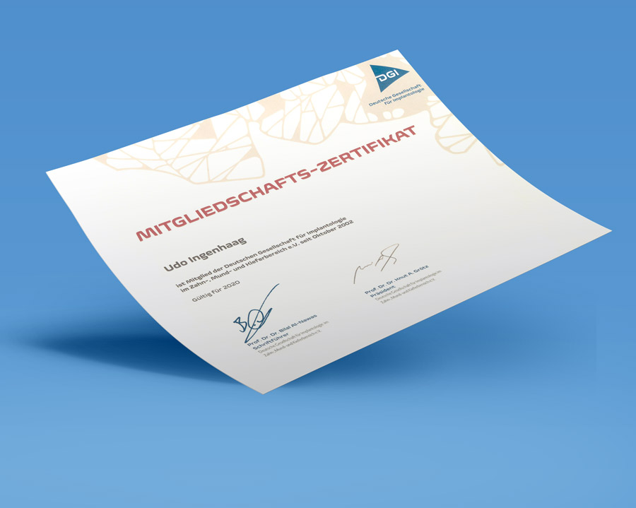 - Curriculum Implantologie (DGI) mit Abschlusszertifikat