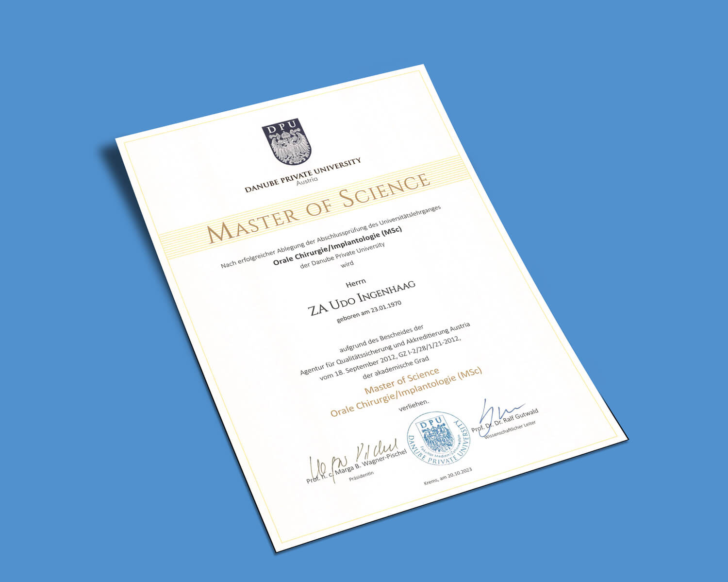 - Masterstudium Master of Science - Orale Chirurgie / Implantologie, DPU Krems